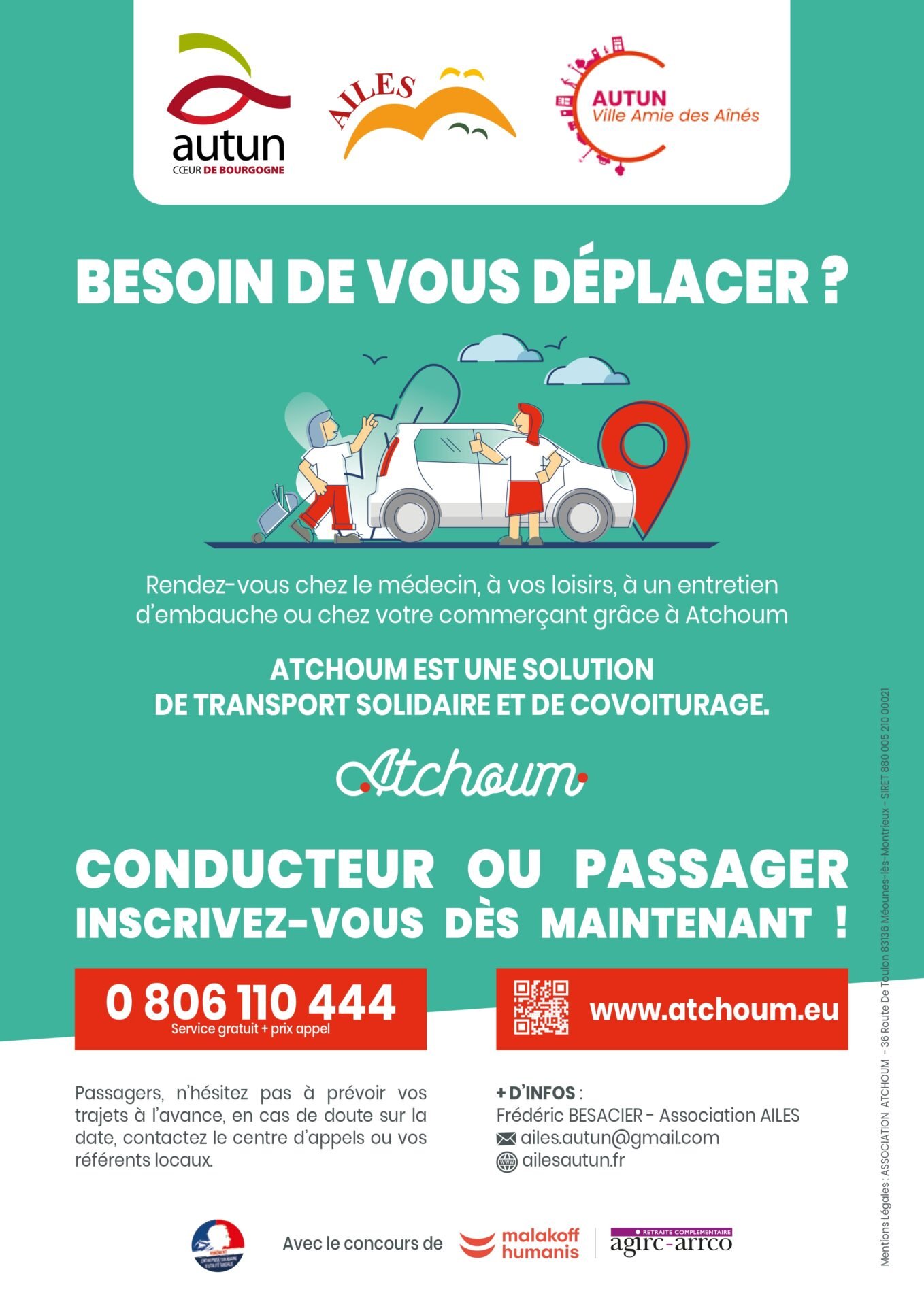 Que ce soit pour un rendez-vous médical, vos loisirs, un entretien d’embauche ou vos courses, la plateforme de mobilité solidaire ATCHOUM, mise en place par l’association AILES, est là pour vous accompagner.