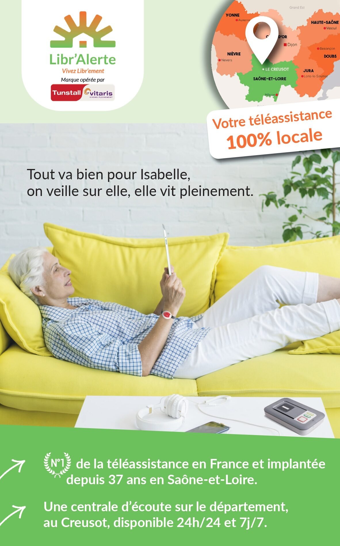 Avec Libr’Alerte, vous êtes connecté à une centrale d’écoute située au Creusot, disponible 24h/24 et 7j/7.